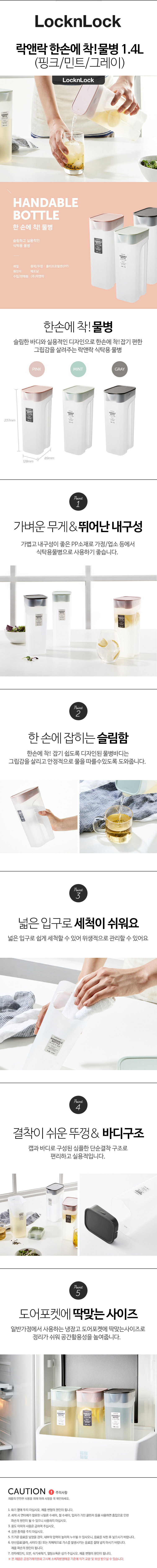 락앤락 한 손에 착 물병 1.4L 핑크 HAP817P