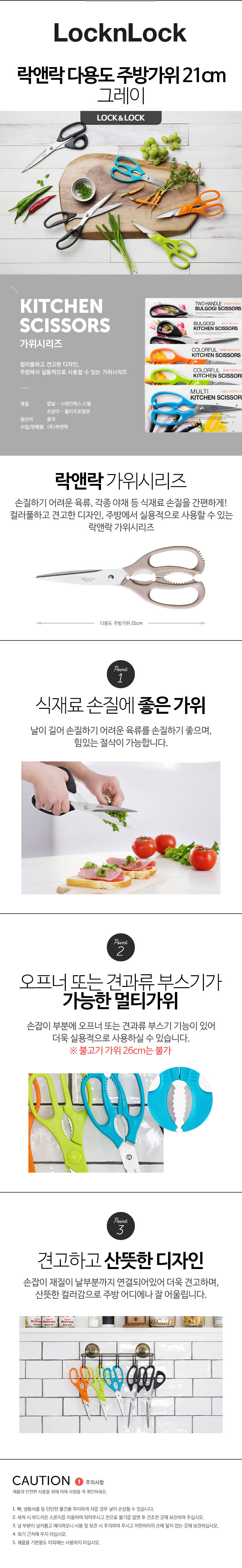 락앤락 다용도 주방가위 21cm 그레이 F00097G