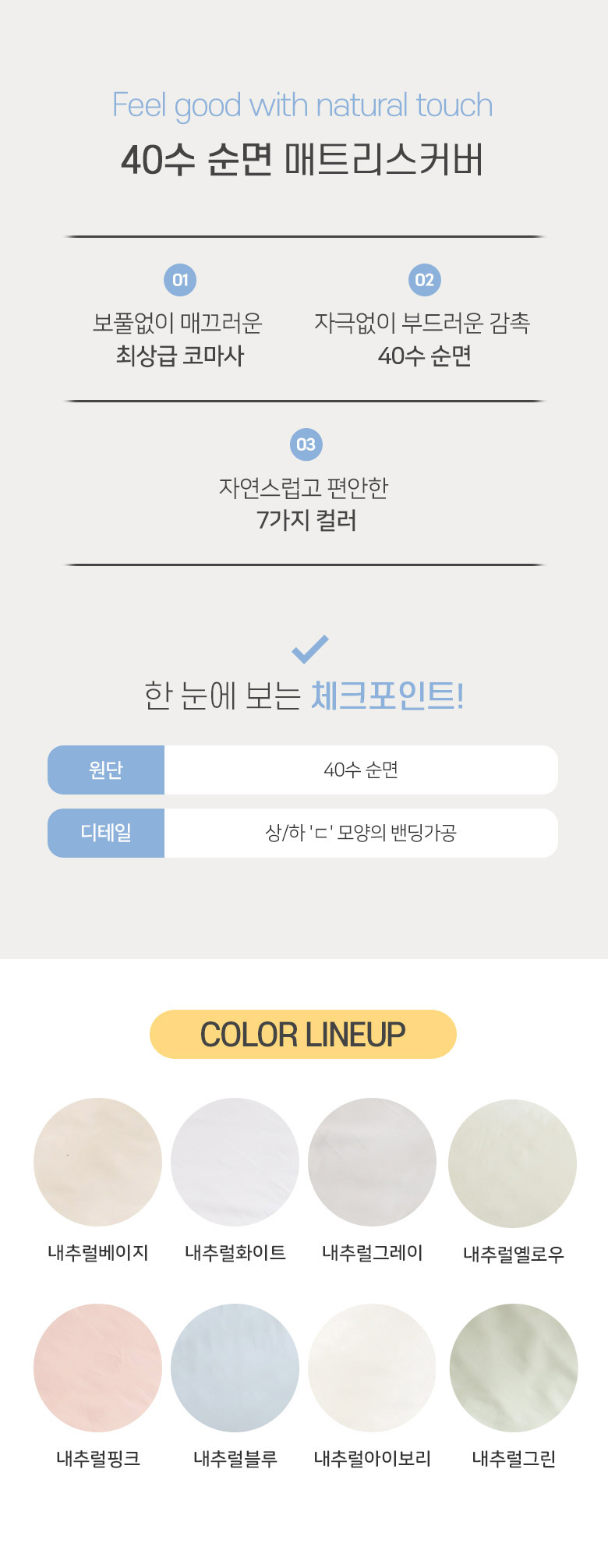 순면 40수 침대 매트리스커버 7종 (SS/Q/K/EK)
