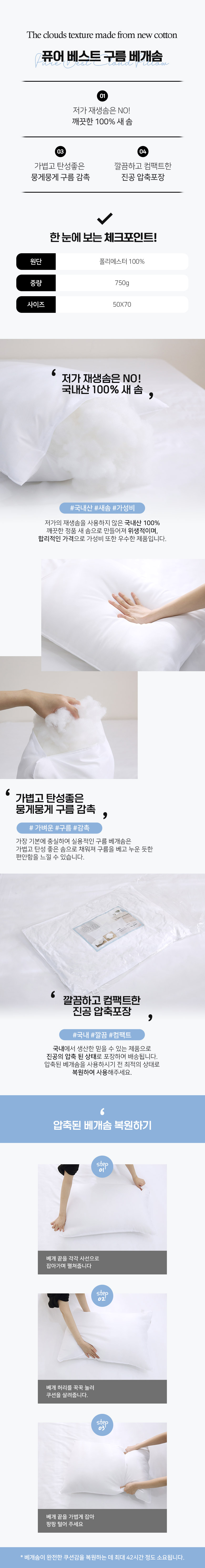[특가 ~12/22]퓨어 구름 베개솜 (50x70)