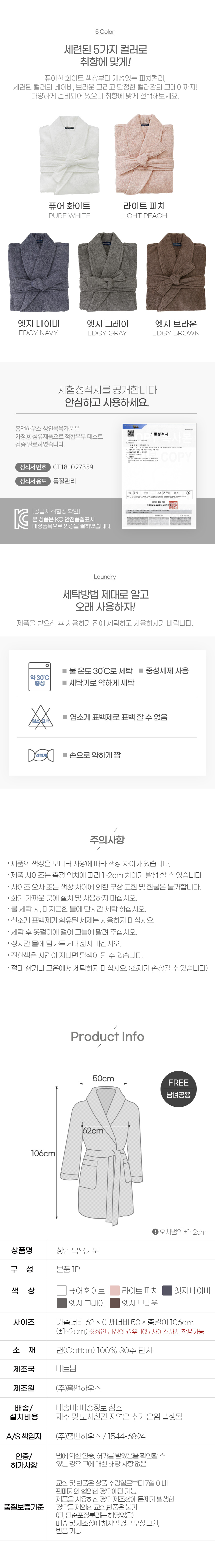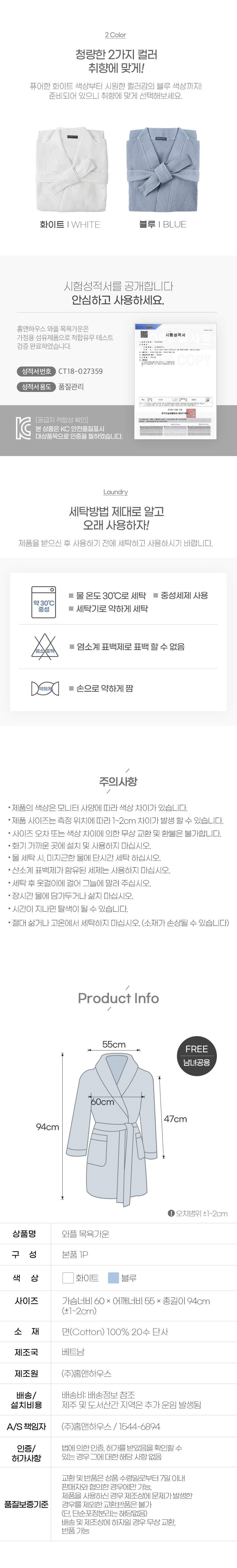 홈앤하우스 와플 성인 목욕가운