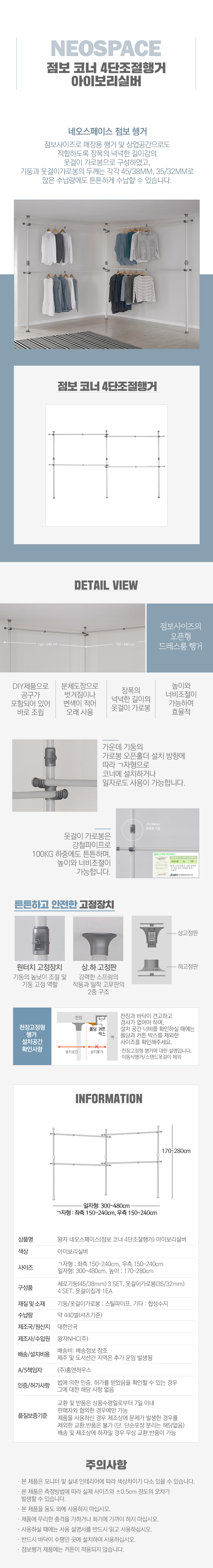 [왕자행거] 네오스페이스(점보 코너 4단 조절행거) 아이보리실버