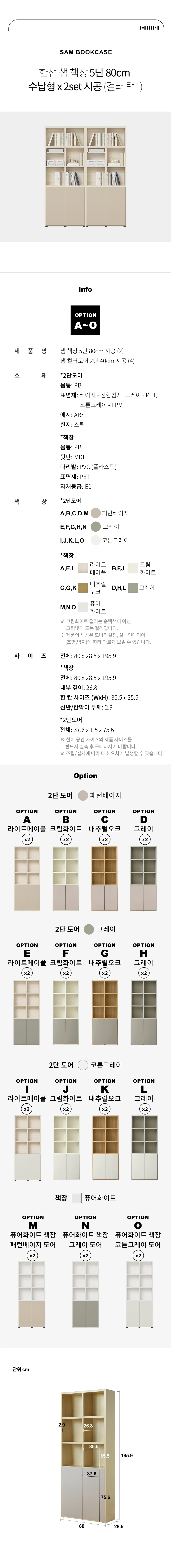 샘 책장 5단 80cm 수납형 X 2set 시공 (컬러 택1)