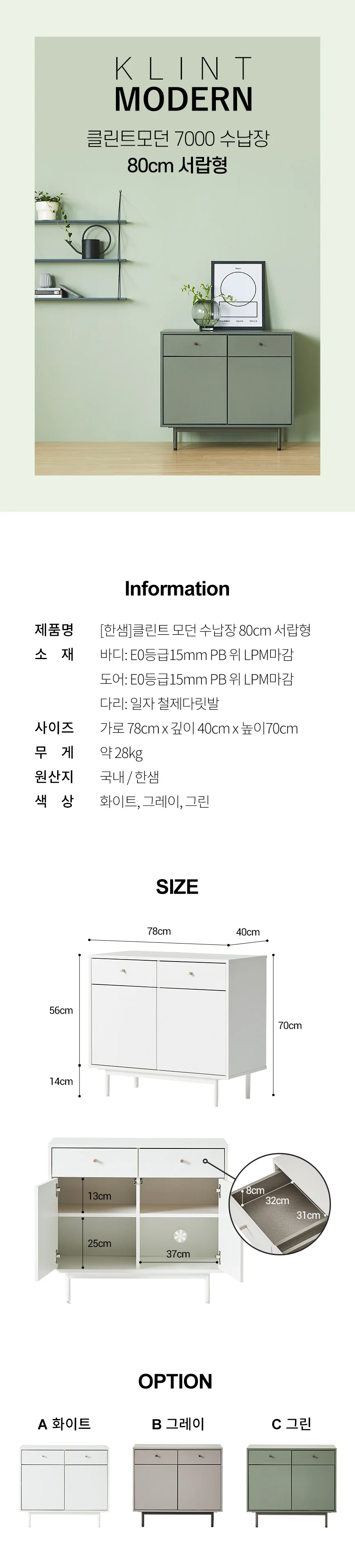 클린트 모던 높은 거실장 80cm 서랍형 수납장 (3종 택1)