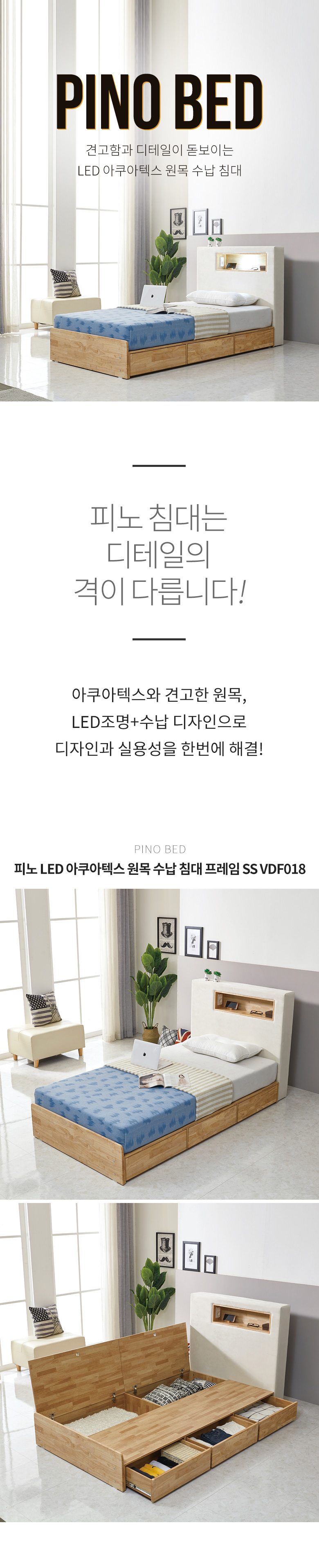 피노 LED 아쿠아텍스 원목 수납 침대 프레임 SS VDF018C