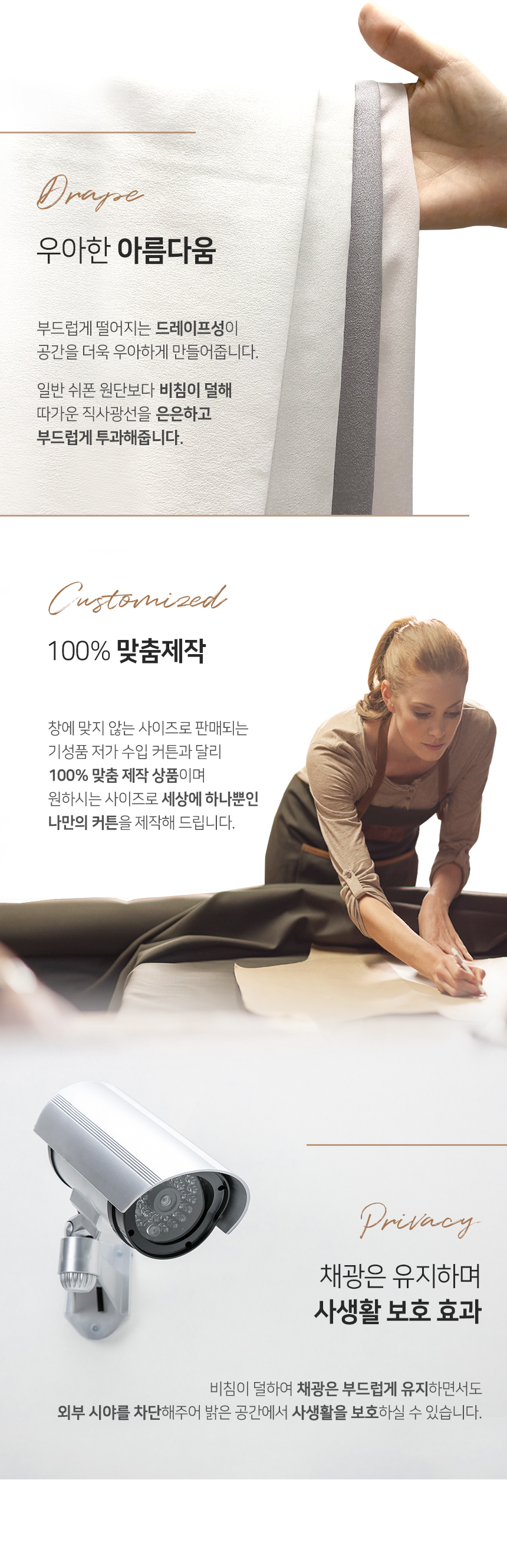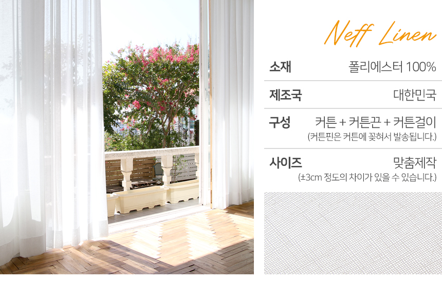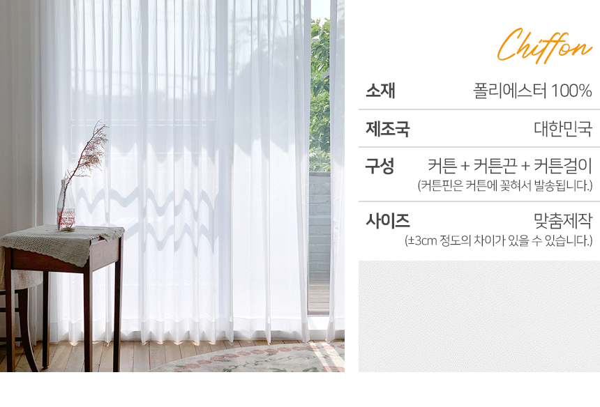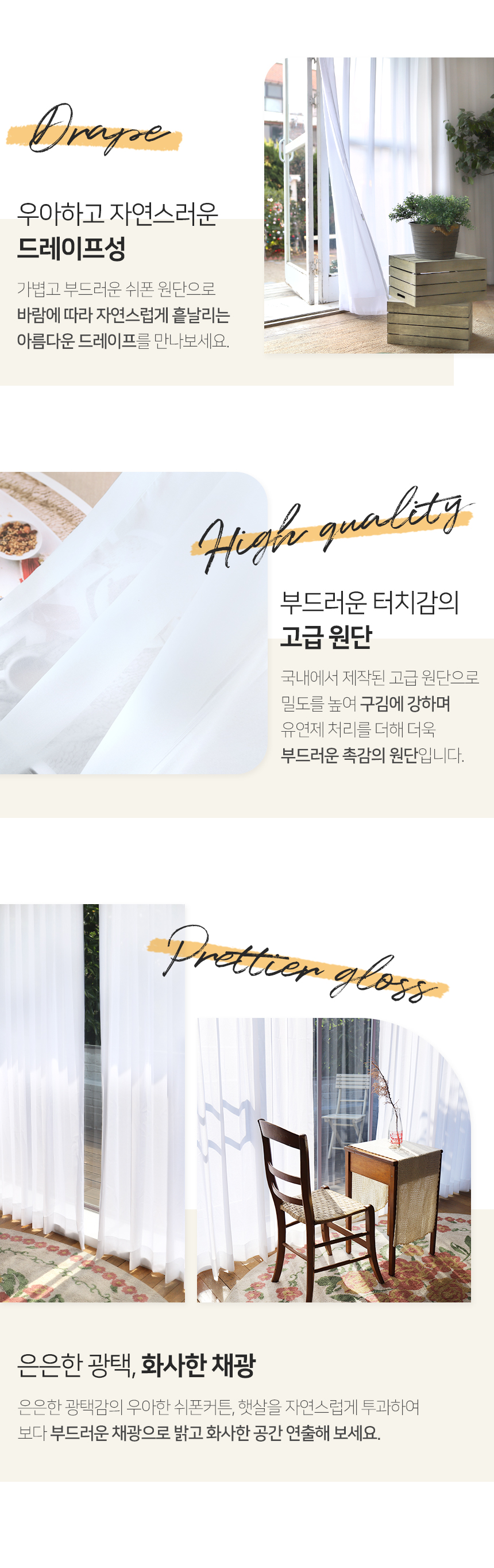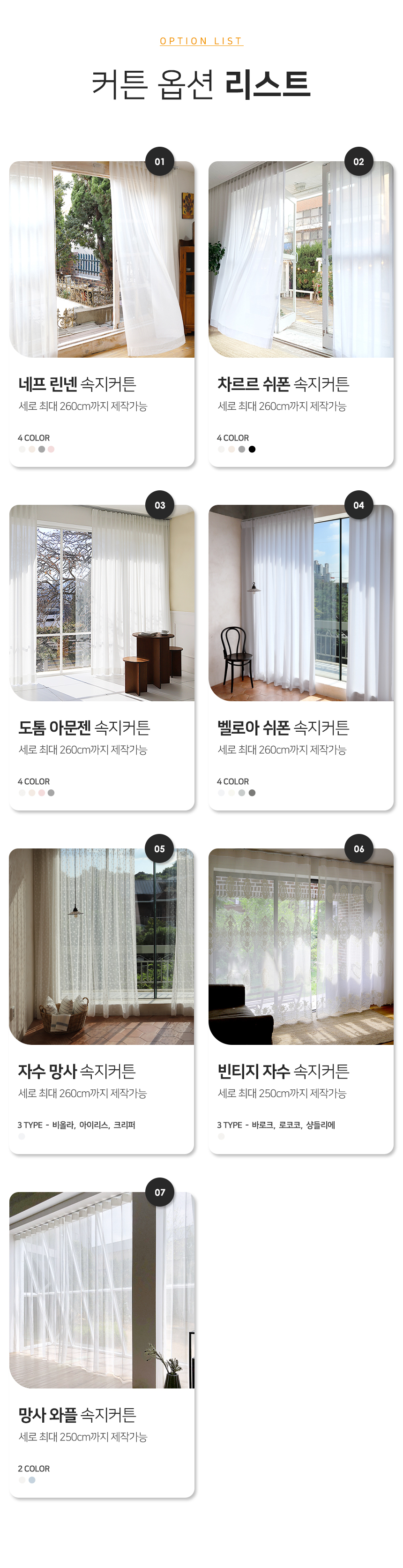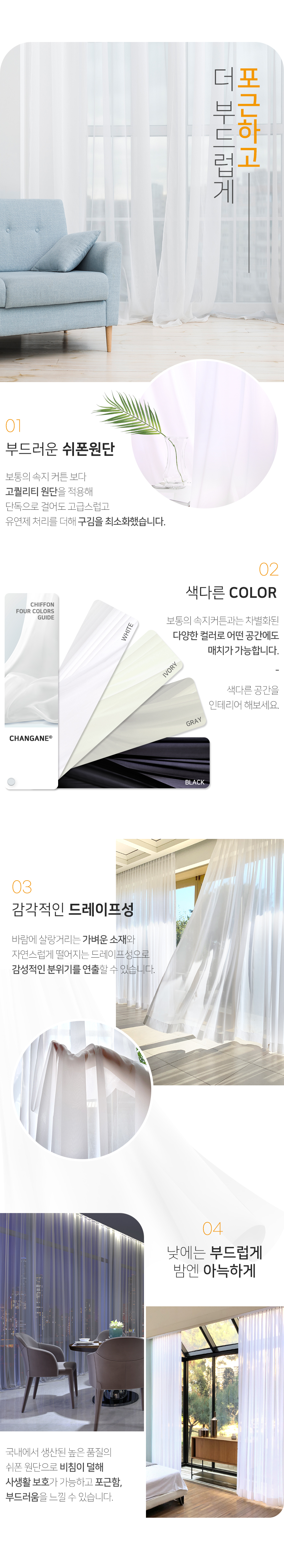 창안애 호텔식 차르르 쉬폰 속지 커튼 린넨 나비주름 거실 안방 속커텐