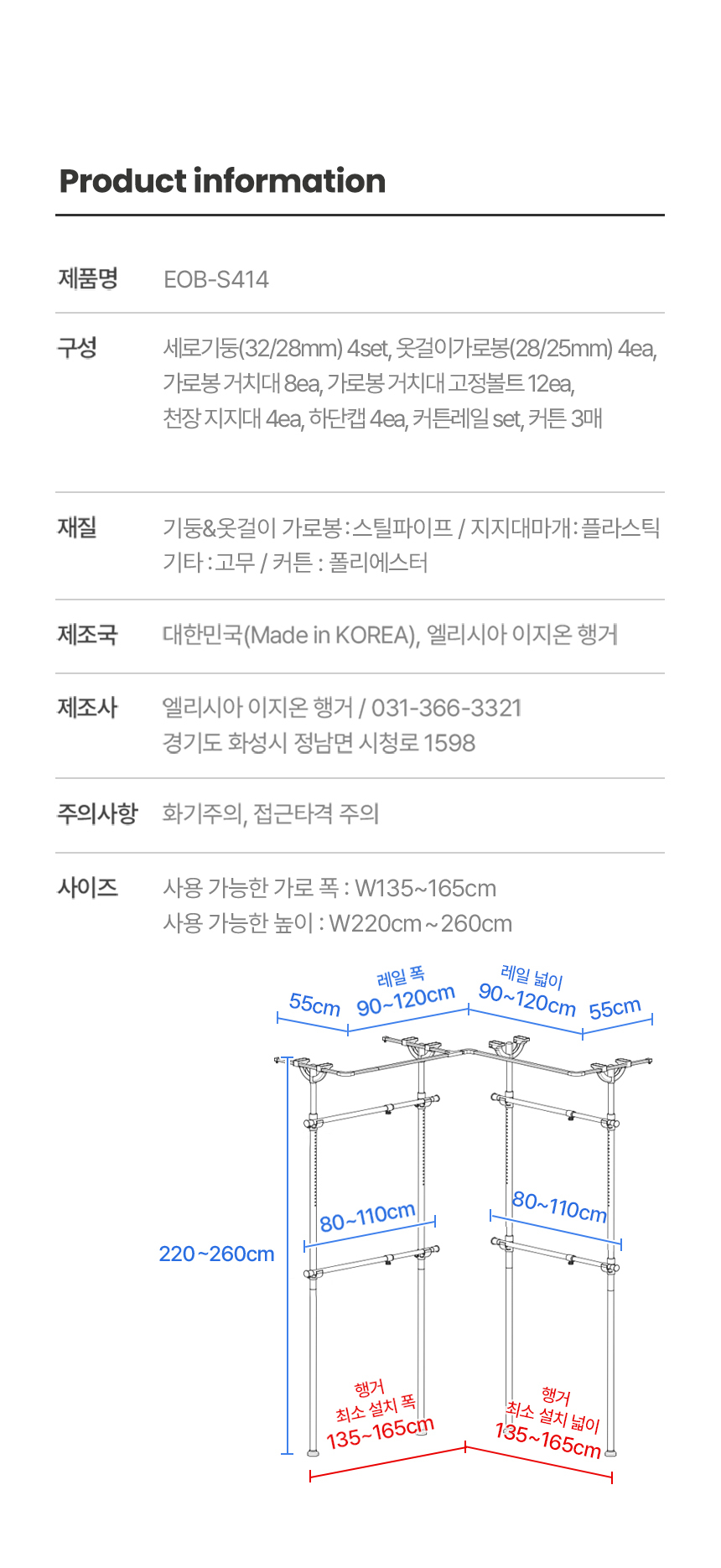 이지온 드레스룸 EOB-S414 시스루 코너커튼행거