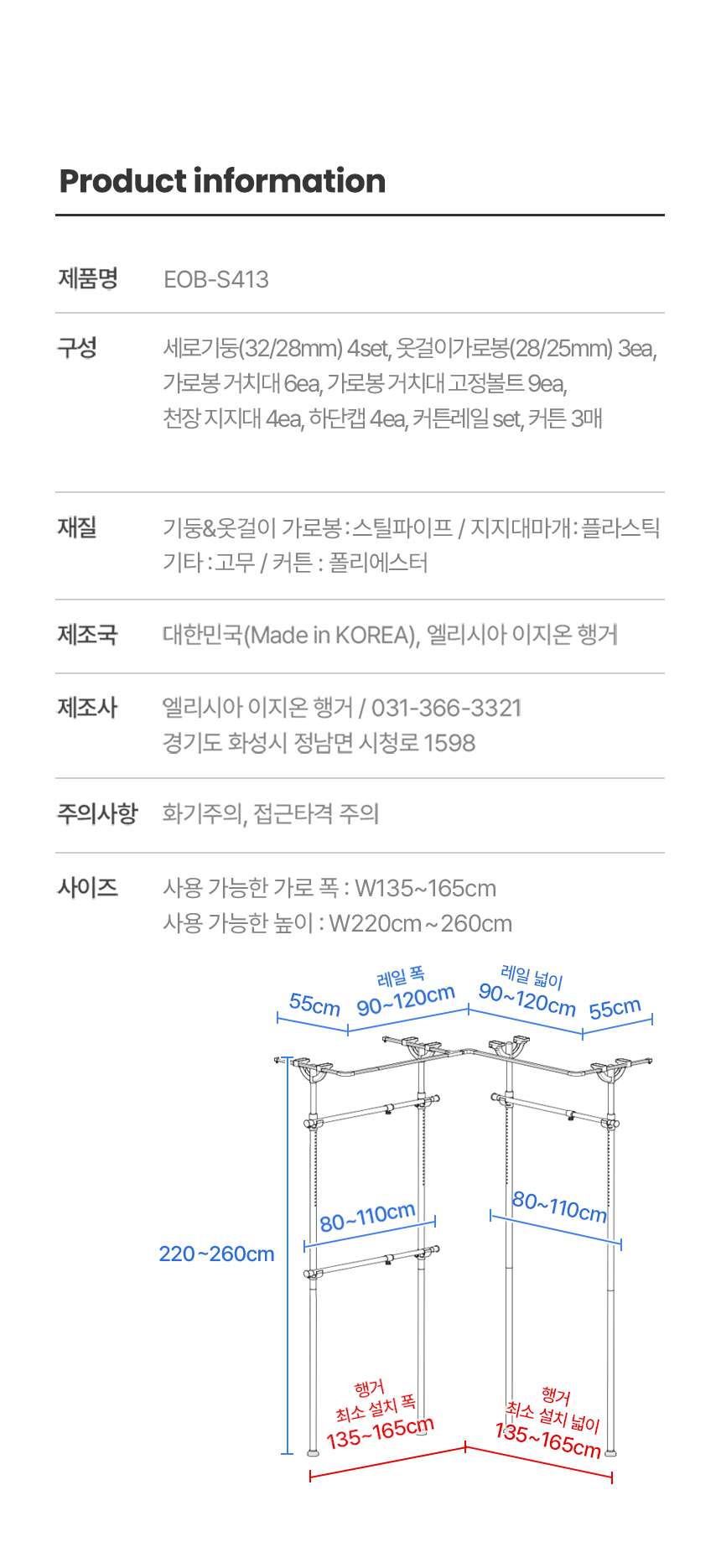 이지온 드레스룸 EOB-S413 시스루 코너커튼행거