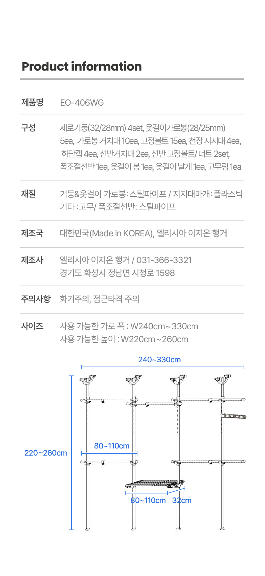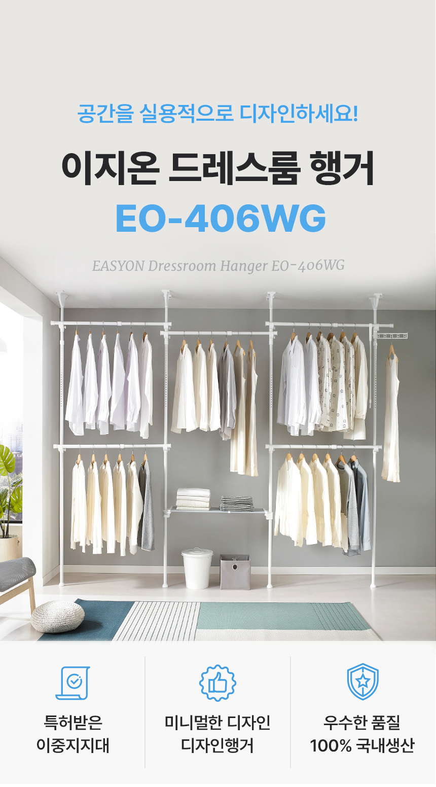 이지온 드레스룸 EO-406WG 행거 폭조절선반