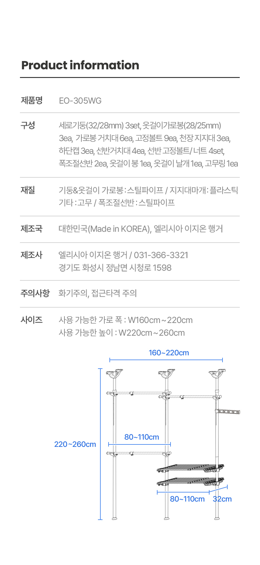 이지온 드레스룸 EO-305WG 행거 폭조절선반