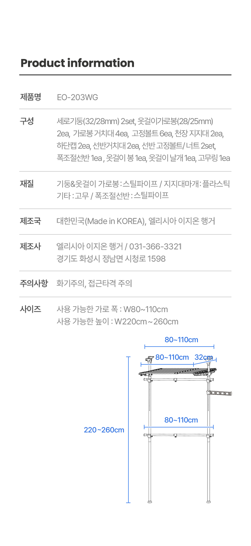 이지온 드레스룸 EO-203WG 행거 폭조절선반
