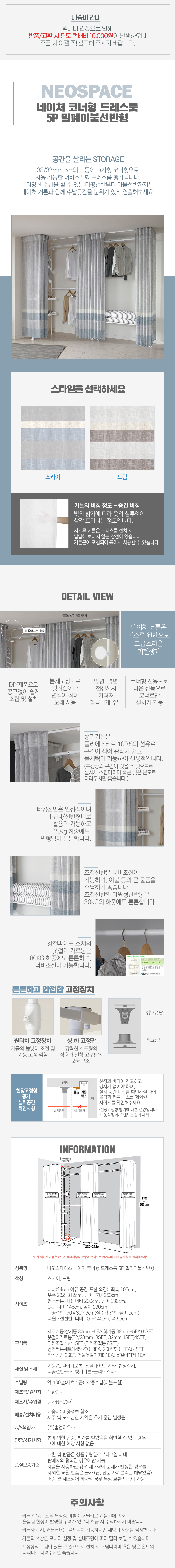 왕자행거 네오스페이스(네이처 코너형 드레스룸 5P 밀폐이불선반형)