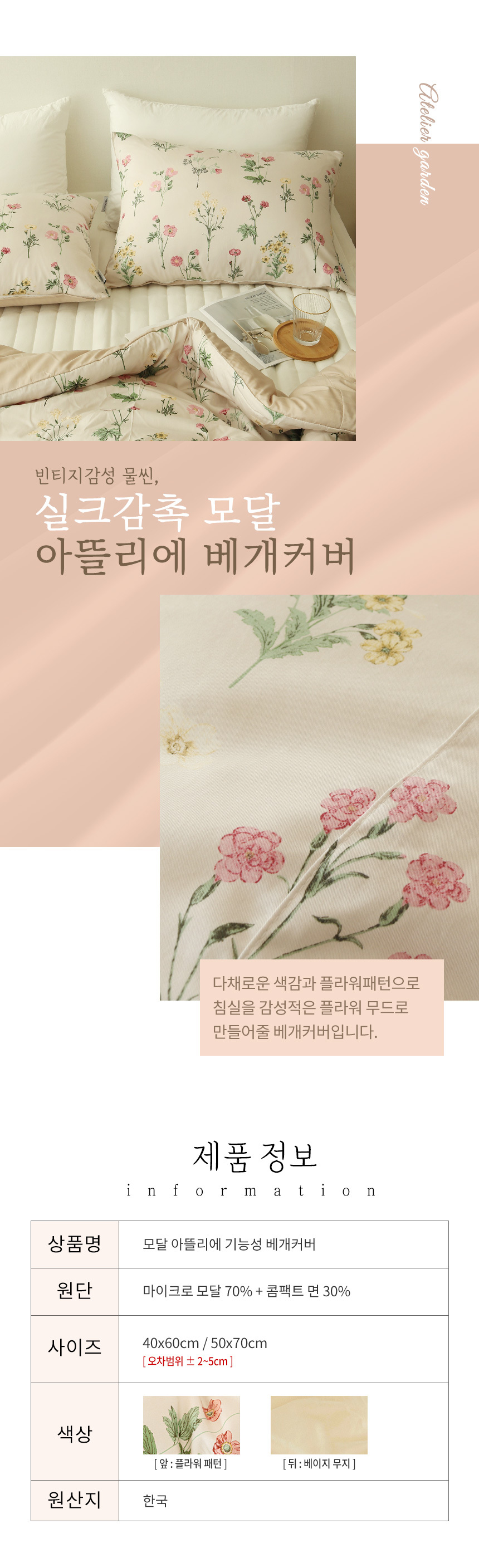 아토앤알로 천연소재 실크감촉 모달 아뜰리에 베개커버 50x70