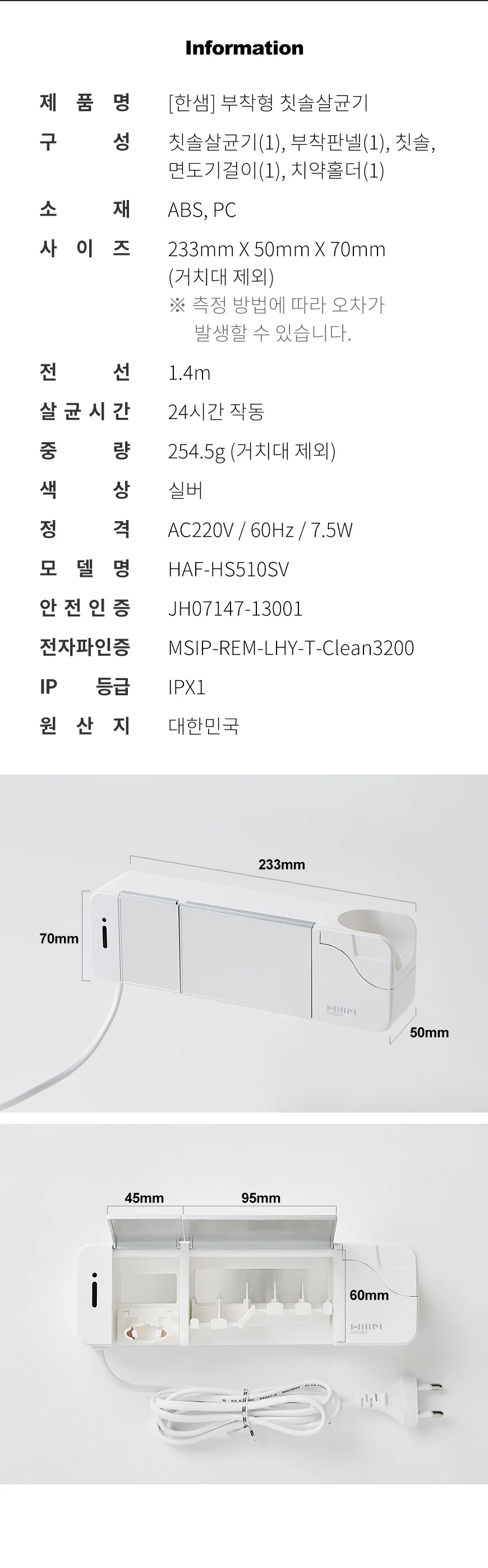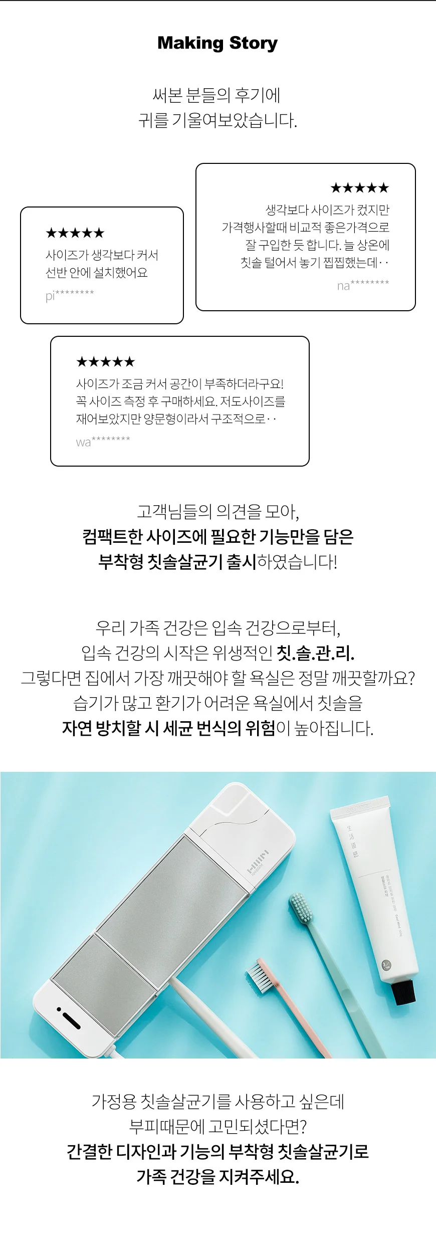 [특가~12/22](한샘톡톡) 부착형 칫솔살균기