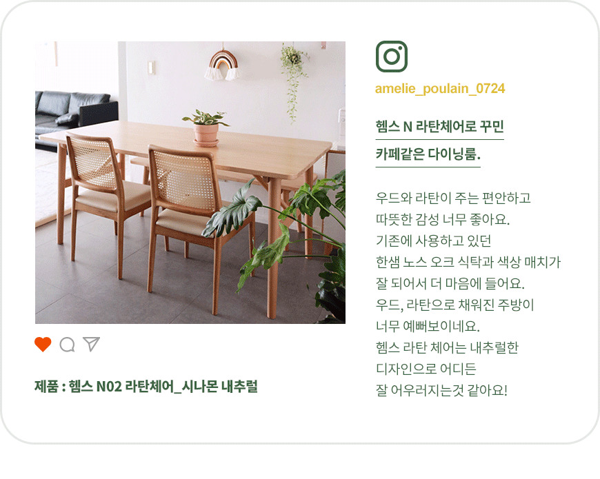 (한샘몰pick) 씨엘로 헴스 N 라탄 체어 1+1 (3종/택1)
