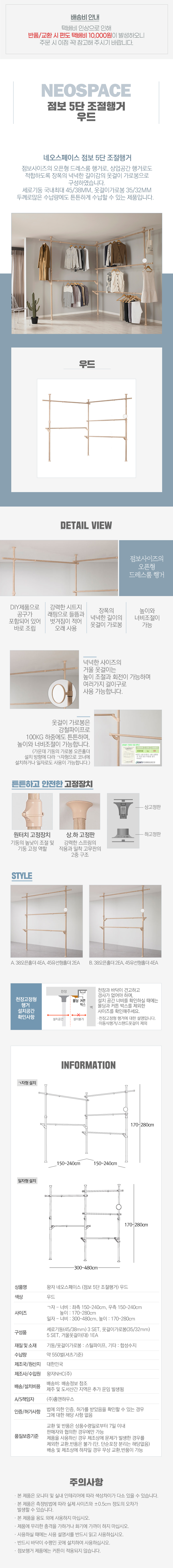 [왕자행거] 네오스페이스 (점보 5단 조절행거) 우드
