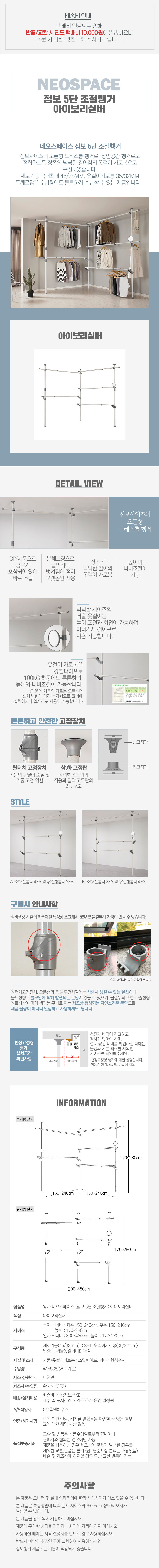 [왕자행거] 네오스페이스 (점보 5단 조절행거) 아이보리실버