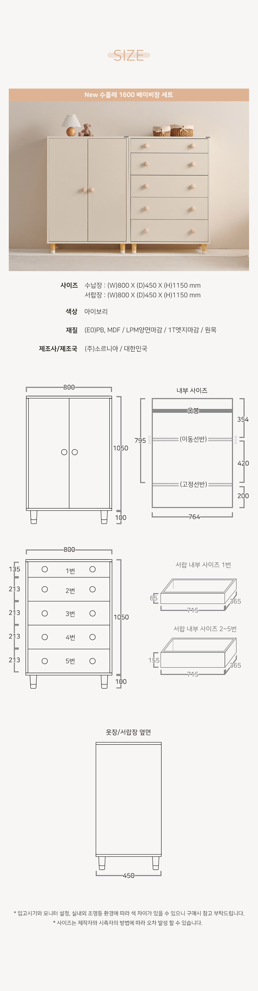 뉴수플레 와이드 1600 아기옷장 베이비장 세트