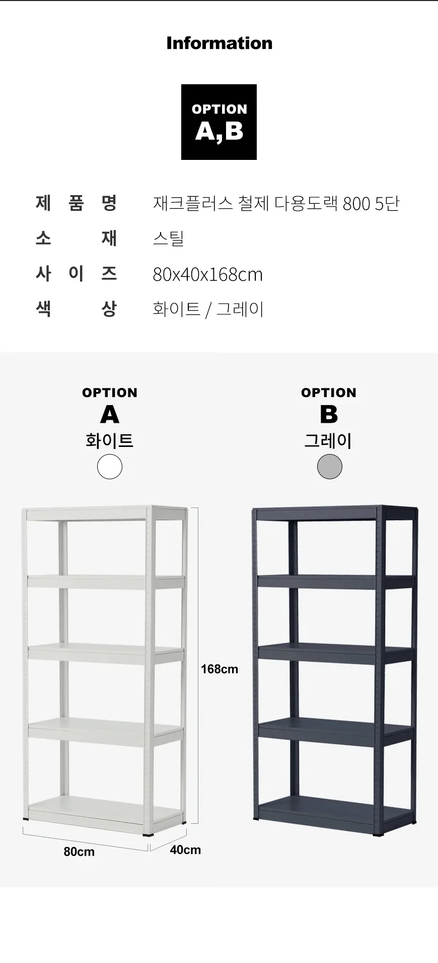 재크플러스 철제 5단 다용도랙 800 (2종/택1)