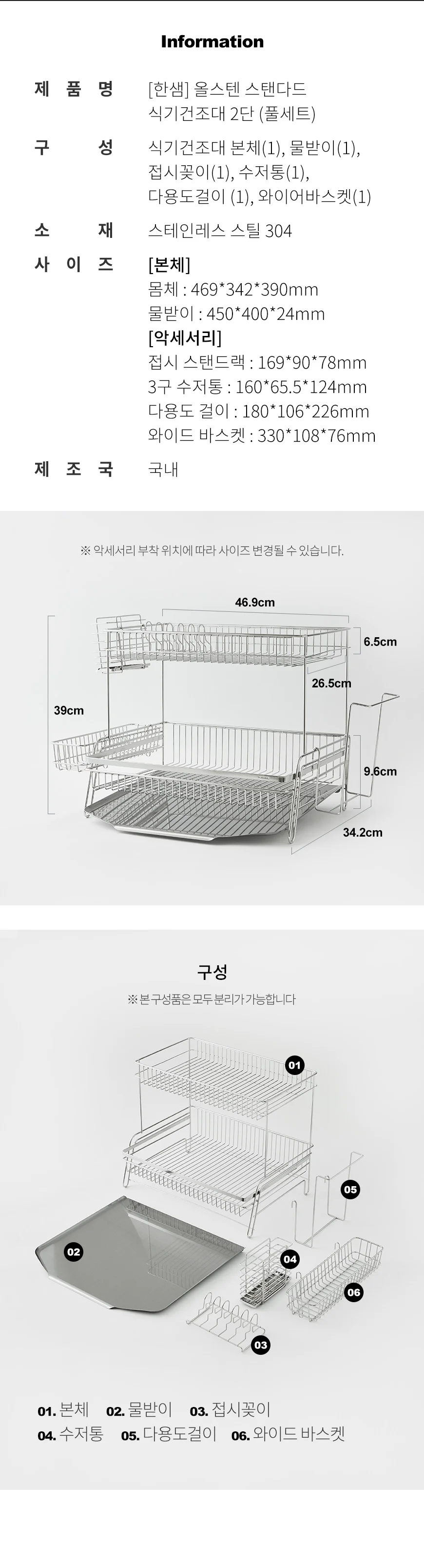 올스텐 스탠다드 2단 식기건조대 (풀세트)