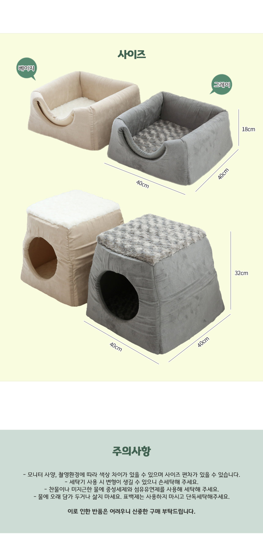 강아지 고양이 접이식 하우스 방석 (2color)