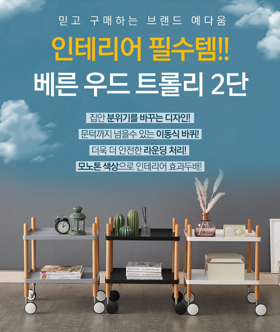 예다움 베른 원목트롤리 2단