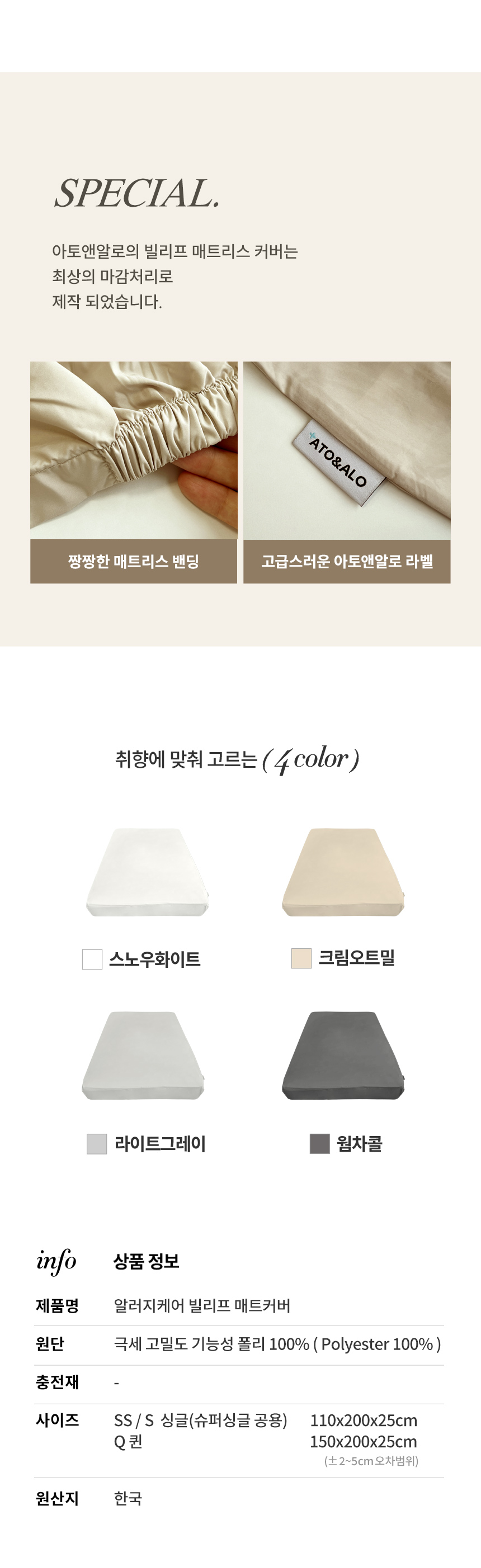 아토앤알로 빌리프 알러지케어 진드기차단 매트커버 SS