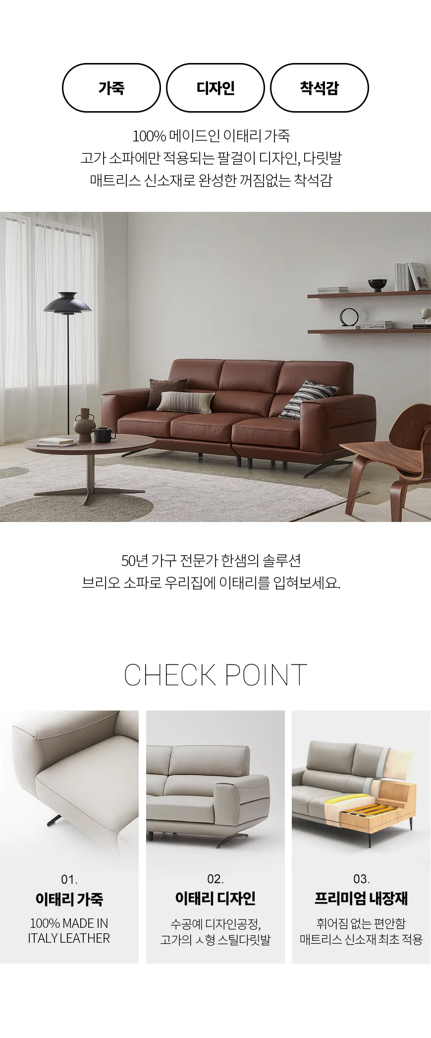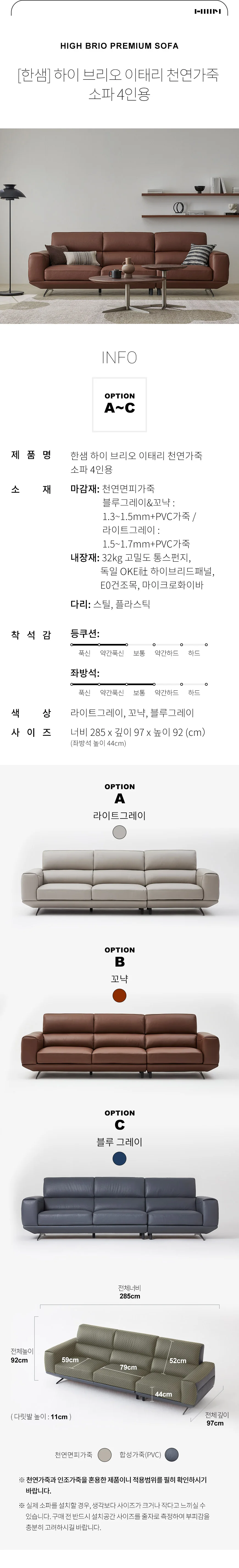 (아울렛)브리오 이태리 천연가죽 4인용 소파