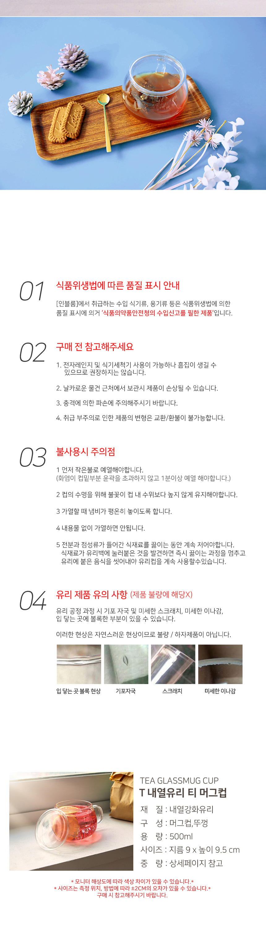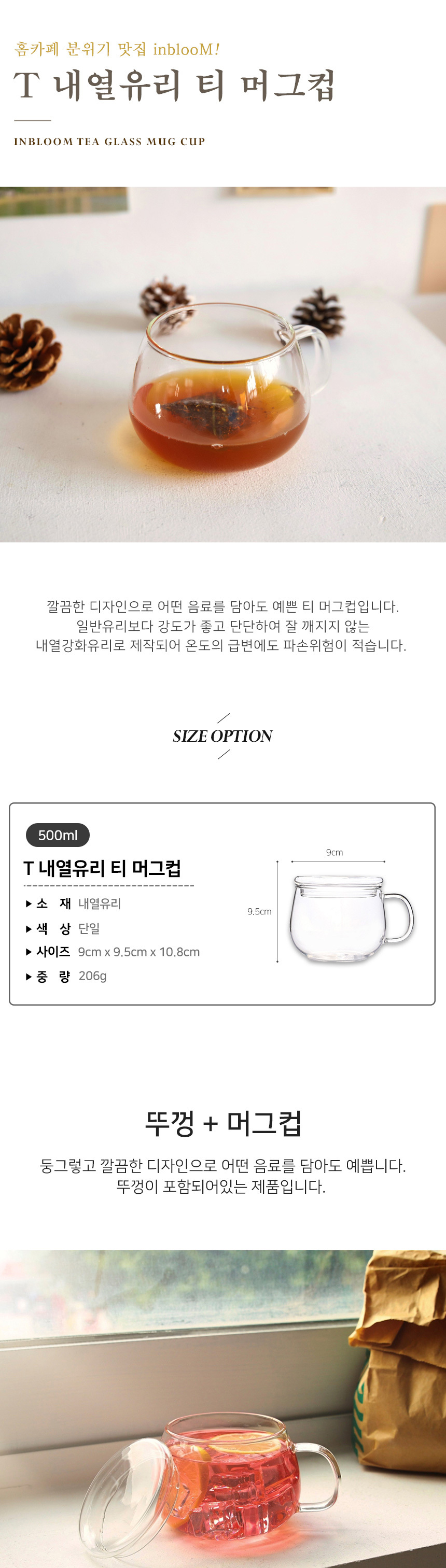 인블룸 T 내열유리 티 머그컵 500ml(뚜껑포함)