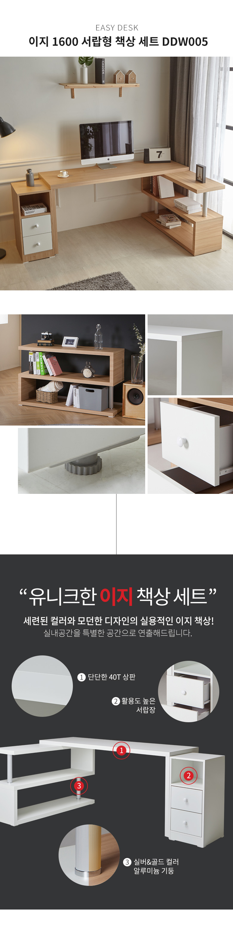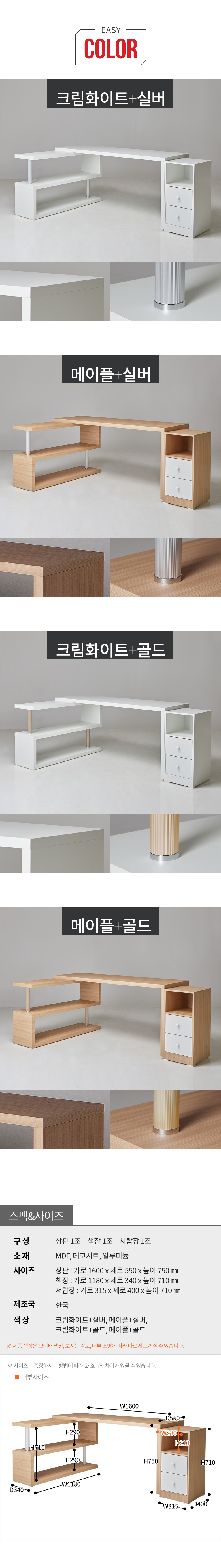 코넬 이지 1600 서랍형 책상 세트 DDW005C