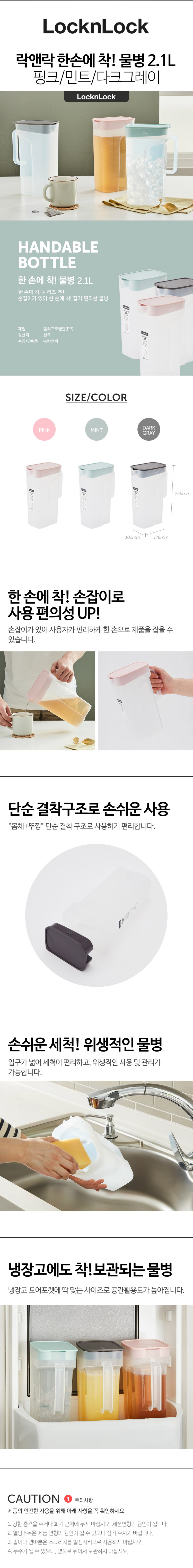 락앤락 한 손에 착 물병 2.1L 핑크 HAP818PIK
