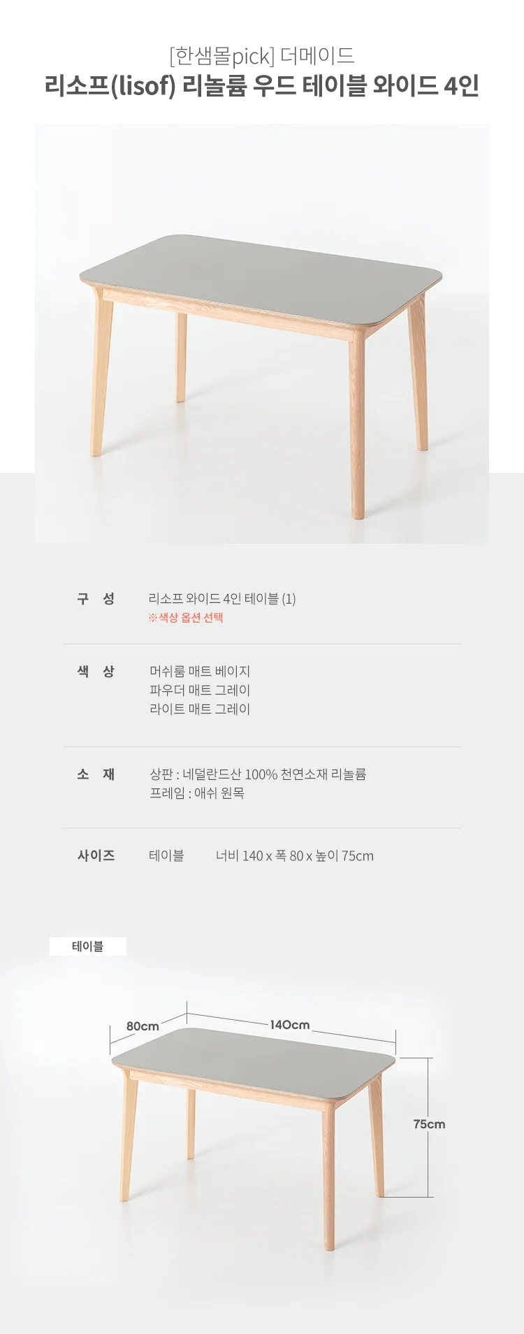 (한샘몰pick) 더메이드 리소프 리놀륨 와이드 4인 원목 식탁 테이블