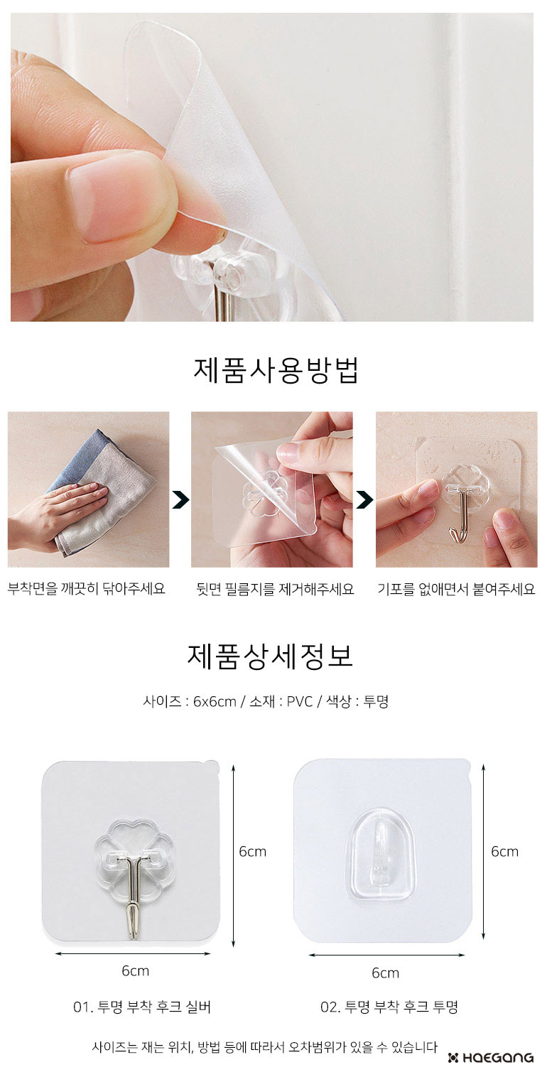 부착 투명 후크 2종
