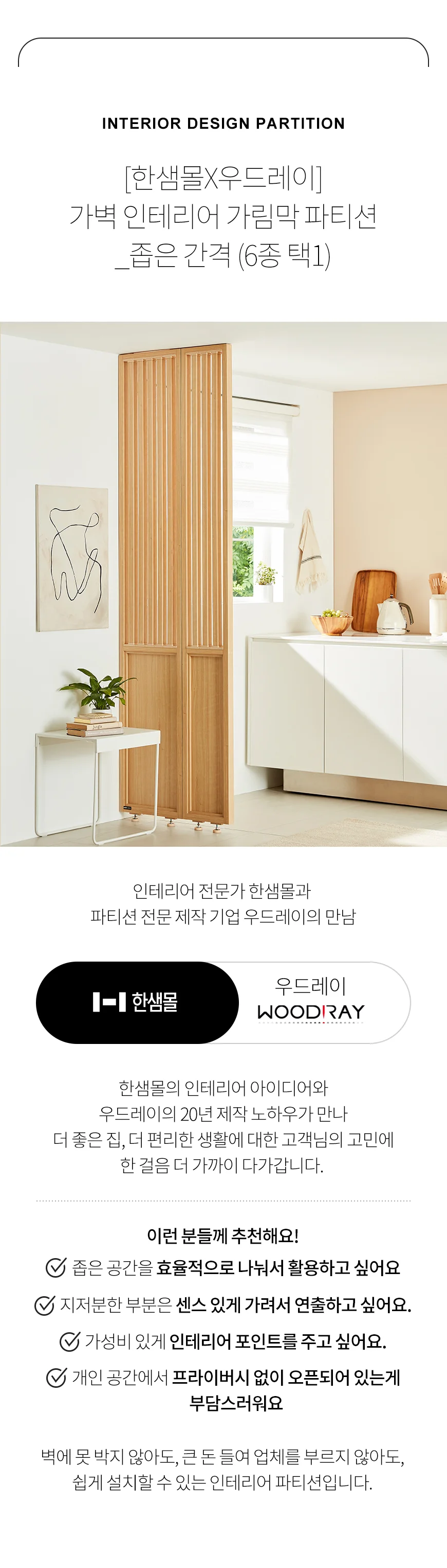(한샘몰pick) 우드레이 가벽 인테리어 가림막 파티션 좁은간격