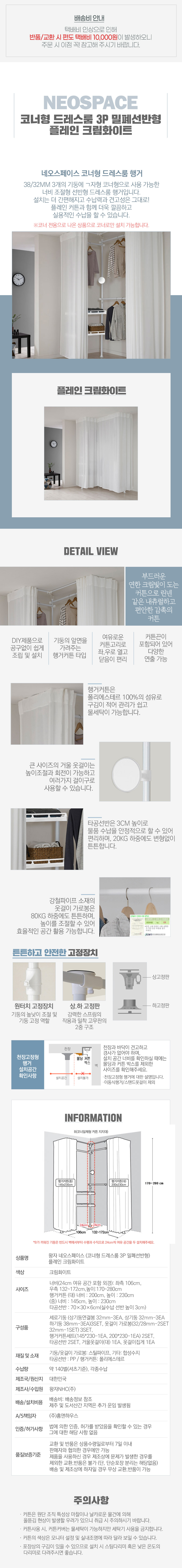 왕자행거 네오스페이스 (코너형 드레스룸 3P 밀폐선반형) 플레인 크림화이트