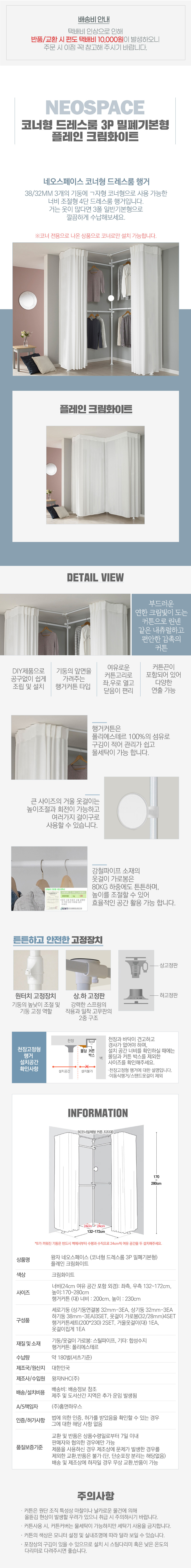 [왕자행거] 네오스페이스 (코너형 드레스룸 3P 밀폐기본형) 플레인 크림화이트