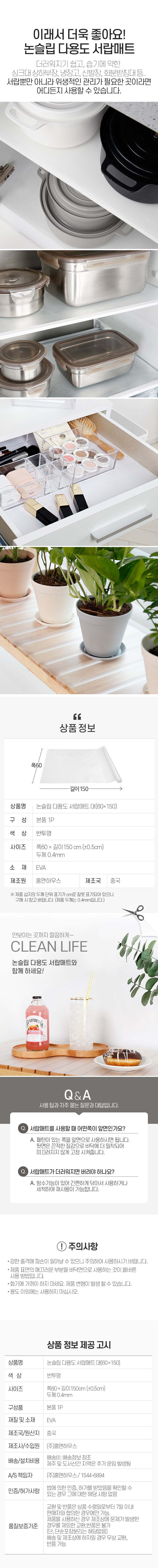 홈앤하우스 논슬립 다용도 서랍매트 대 (60x150)