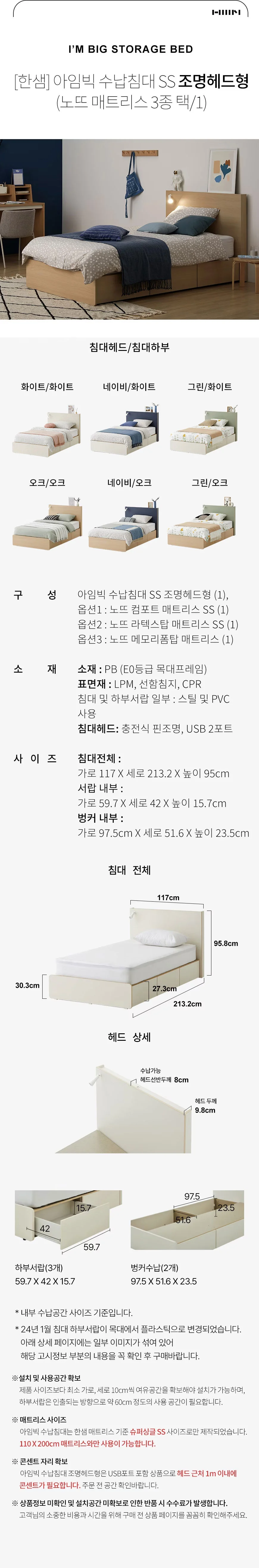 아임빅 수납침대 SS 슬림수납헤드형+노뜨 매트리스