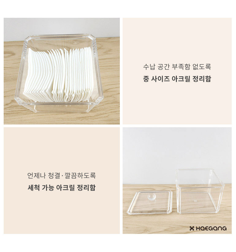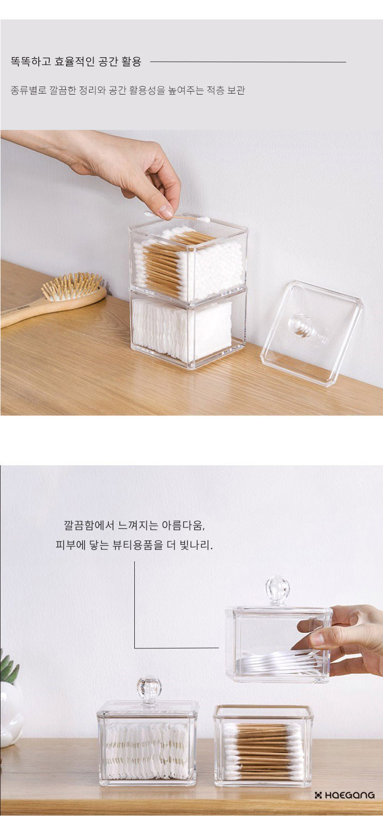투명 아크릴 화장솜 면봉 악세사리 보관케이스