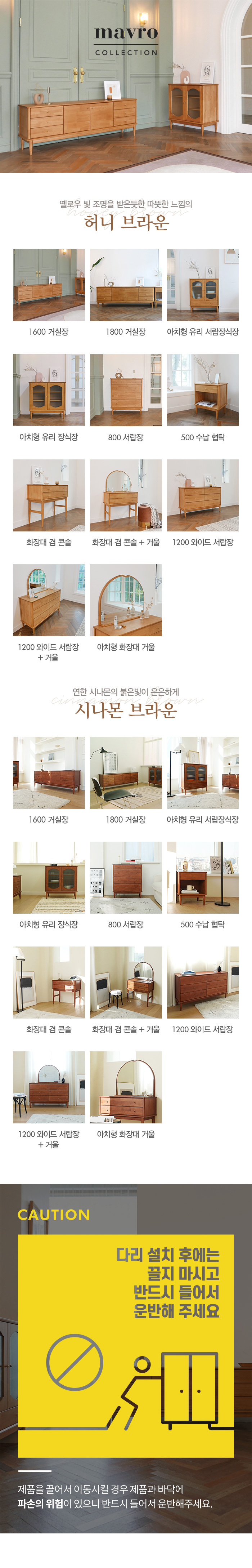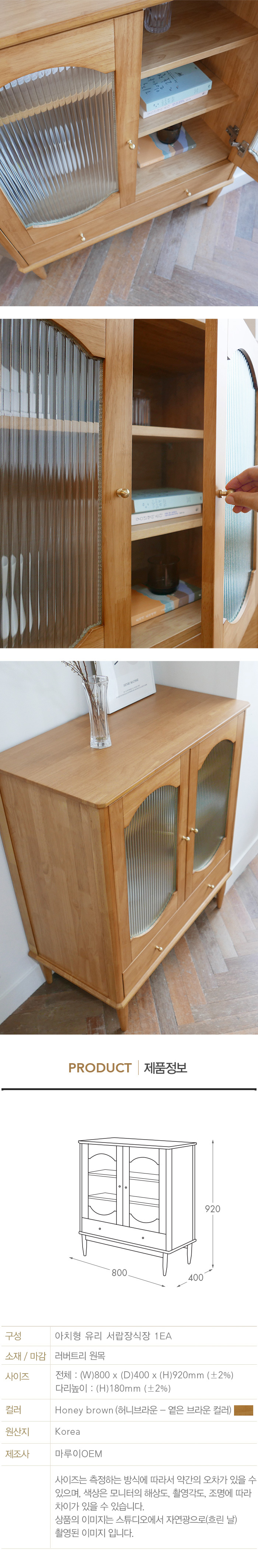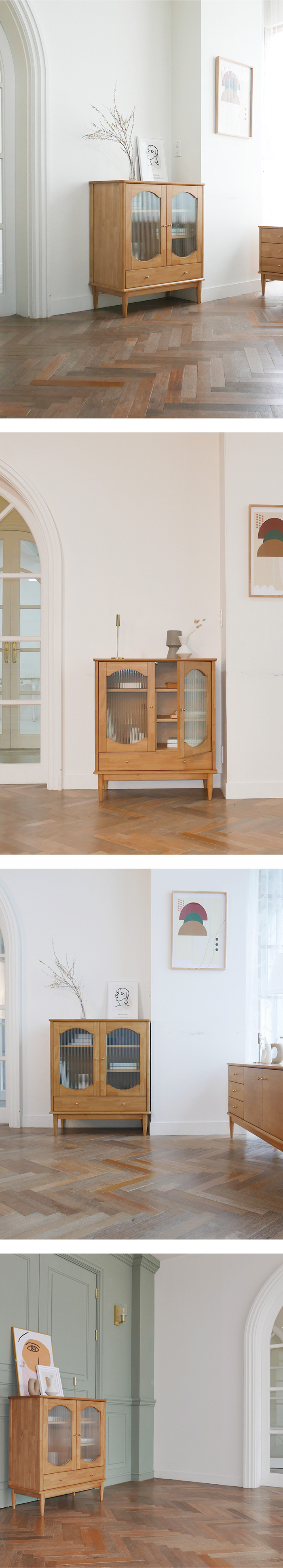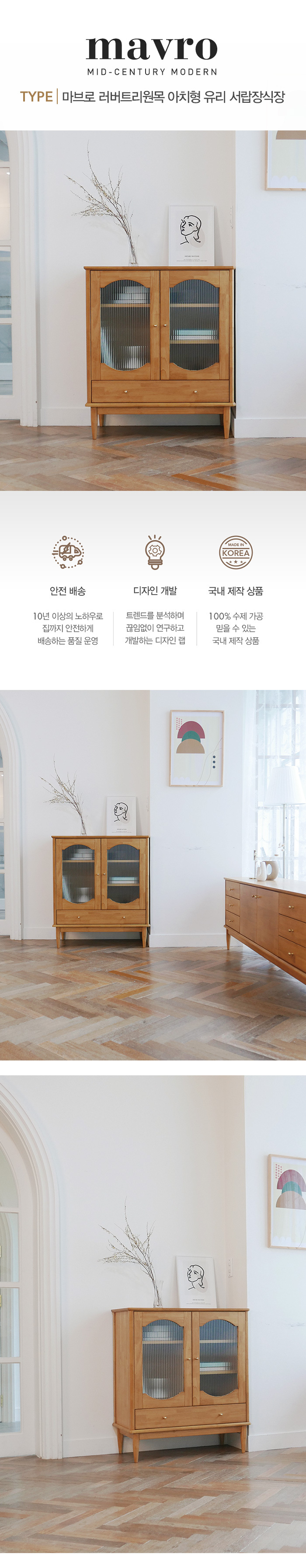 마루이 마브로 러버트리원목 아치형 유리 서랍 장식장/수납장