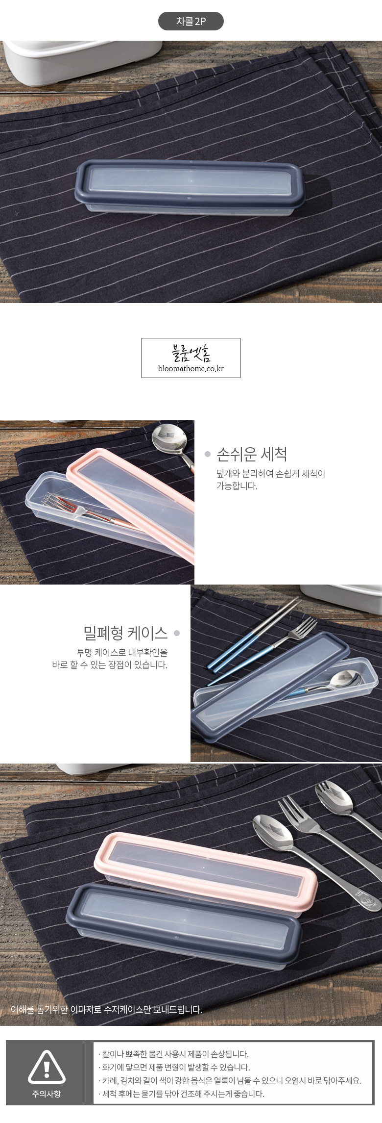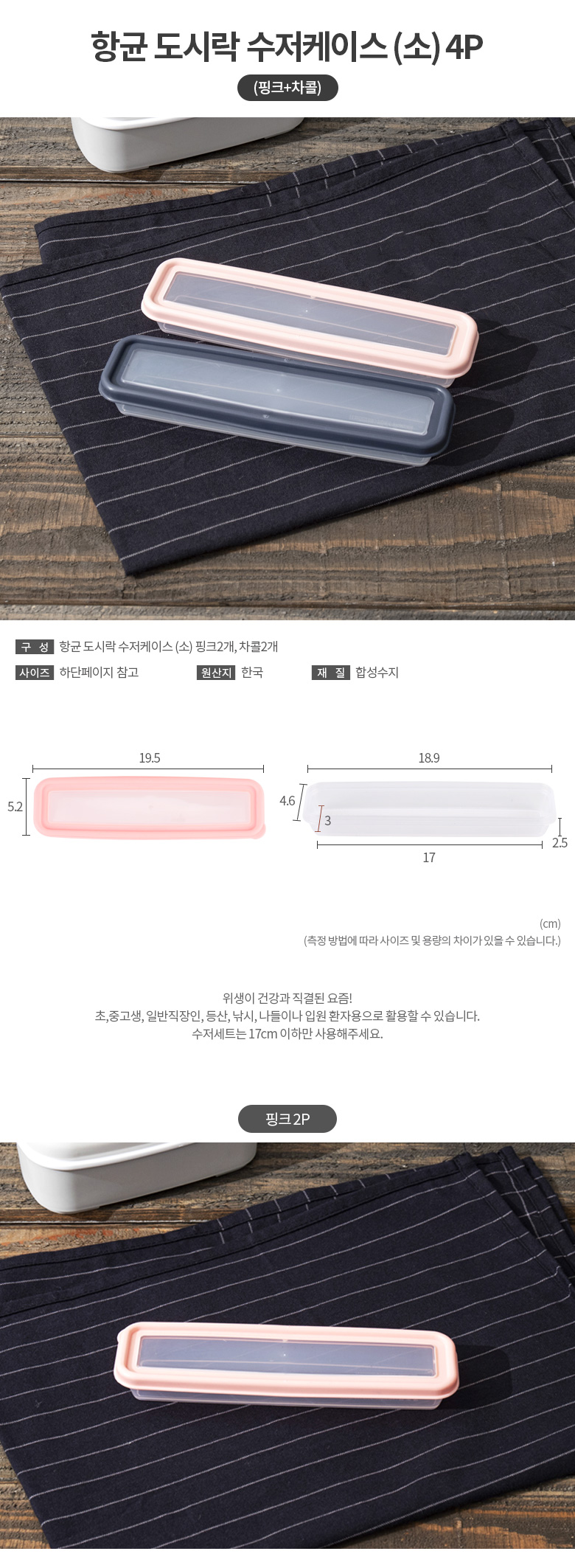 항균 도시락 수저케이스 (소) 핑크2개, 차콜2개 총4개
