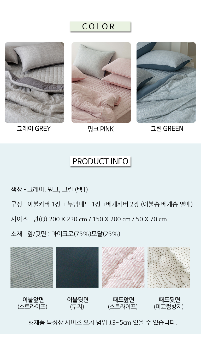 마이크로모달 알러지케어 실크감촉 이불패드세트Q 3색