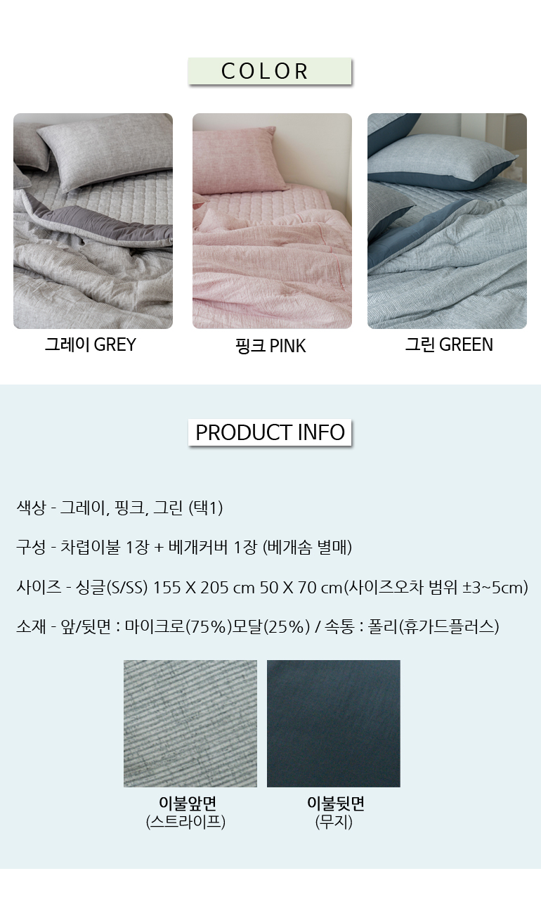 실크같은 모달마이크로 알러지 차렵베개세트S 그린