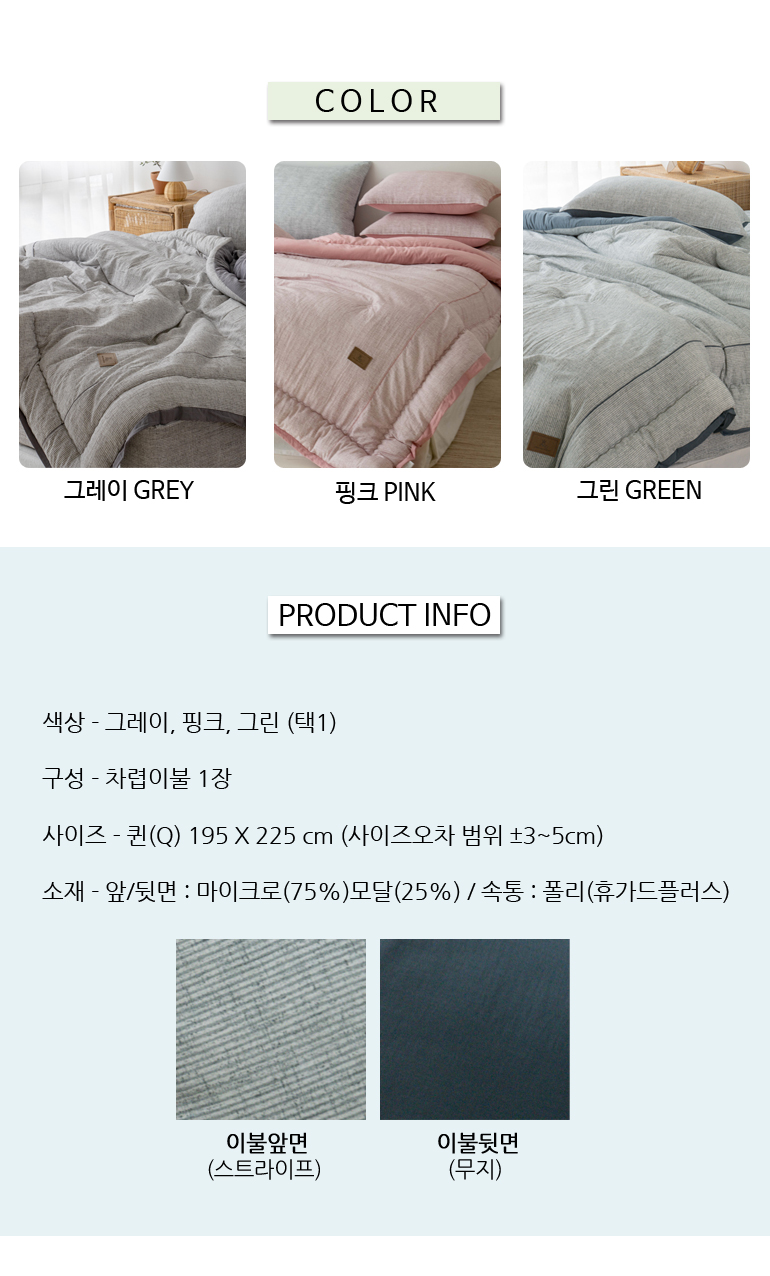 실크같은 모달마이크로 알러지케어 차렵이불Q 그레이