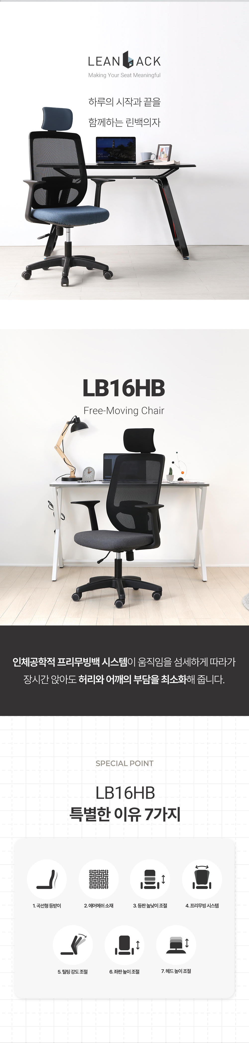 린백 LB16HB 프리무빙백 학생 책상 사무실 의자