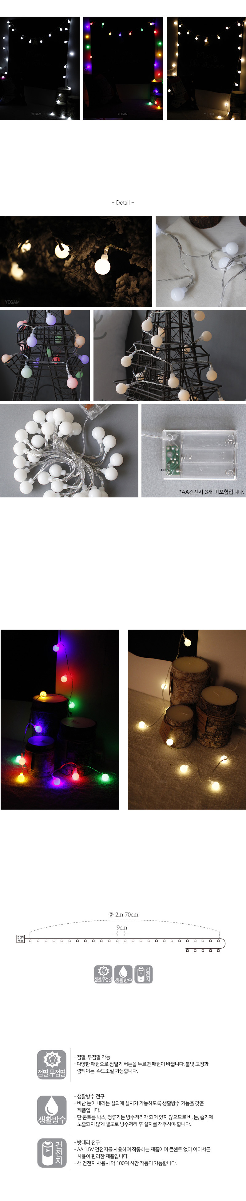 * LED 30P 구슬 전구 (밧데리) - 3color 입니다.