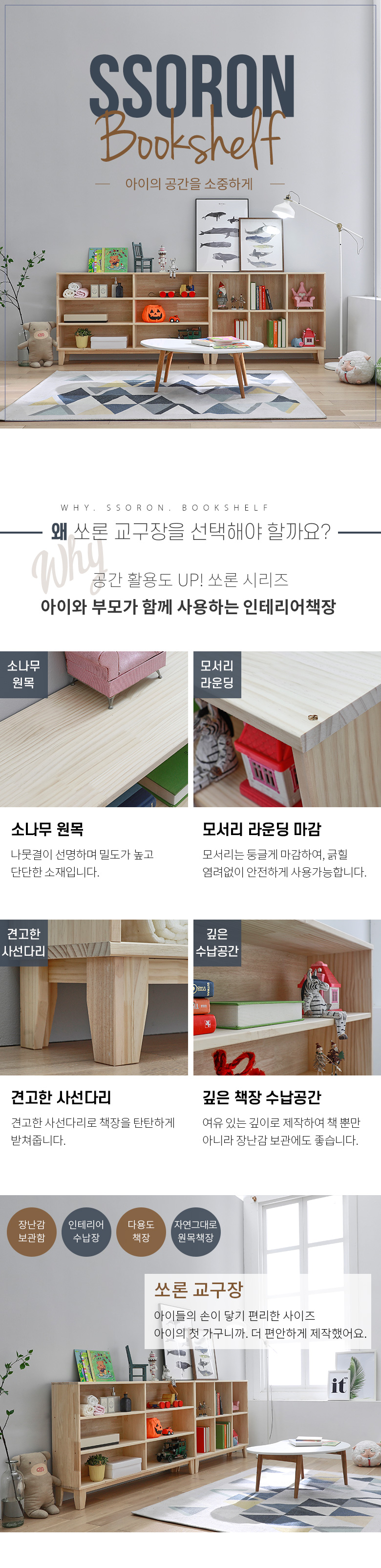 [나무뜰] 네시스 쏘론 2450 원목 책장 교구장 세트 GM336C