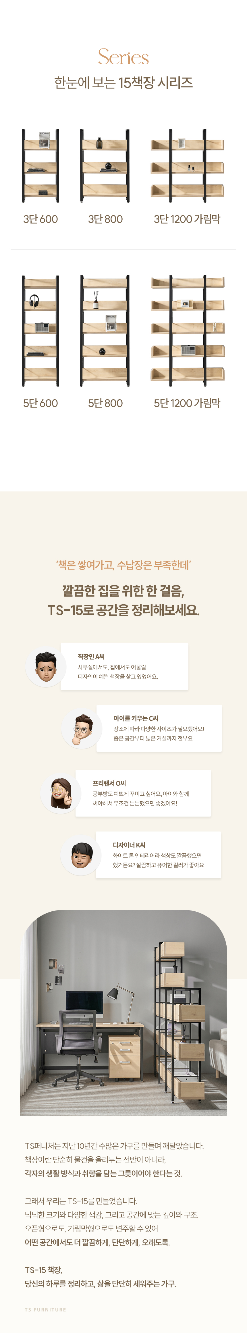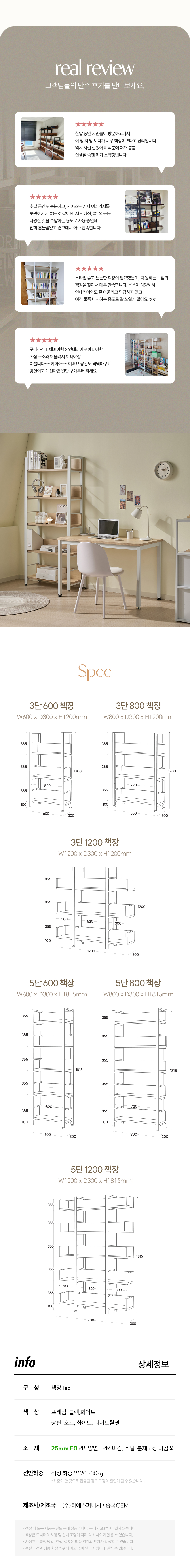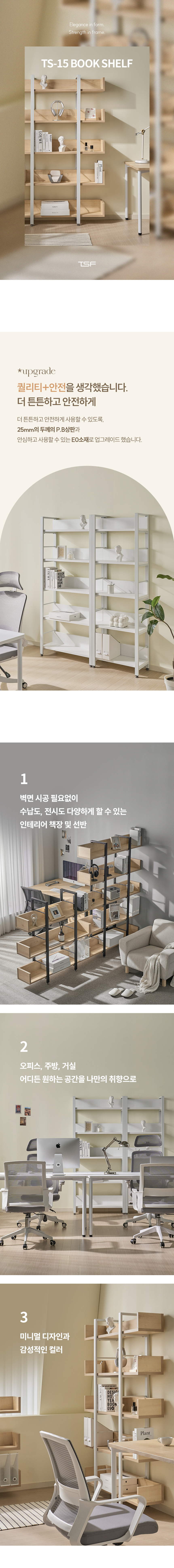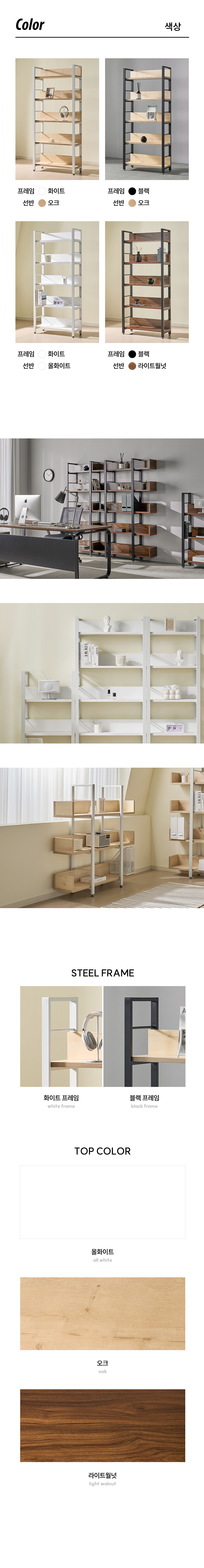 TS-15 철제책장 사무실 진열장 선반 서재 책장 3단/5단 3colors