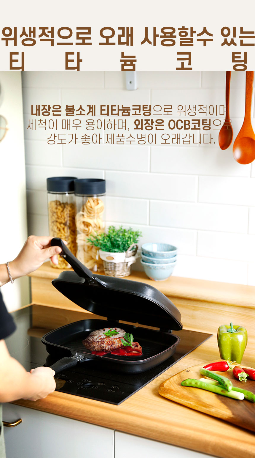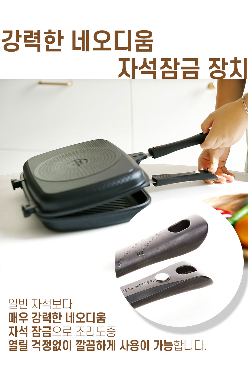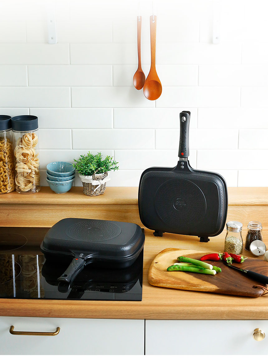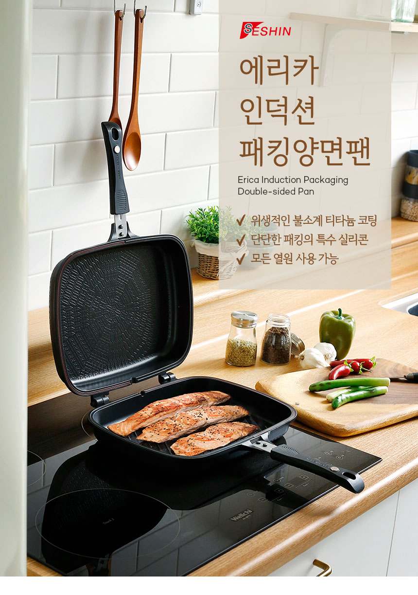 세신 퀸센스에서 만든 에리카 인덕션 양면팬 입니다 가스렌지, 핫플레이트, 인덕션 등 다양한 열원에서 사용가능한 양면 후라이팬 입니다 특수 실리콘 장착으로 뒤집어도 흐르지 않고 불소계 티타늄코팅으로 위생적이며 양면이 분리되는 양면프라이팬의 자세한 내용은 아래 상세페이지를 확인해주세요~!