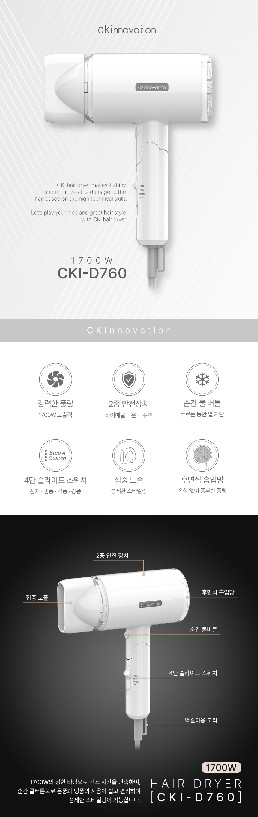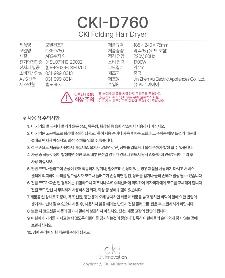 CKI-D760 드라이기 헤어드라이기 접이식